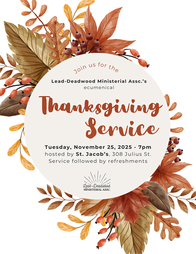 Join us for the Lead-Deadwood Ministerial Association's Community Annual Thanksgiving Service.